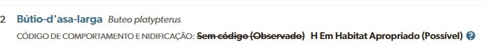 Um novo código de nidificação e comportamento é anexado à observação: o novo código aparece no eBird em mapas e tabelas de códigos de nidificação e está disponível como «código de nidificação» e «código de comportamento» ao descarregar dados dados por investigadores. A visualização deste resultado ao se consultar a lista é:
